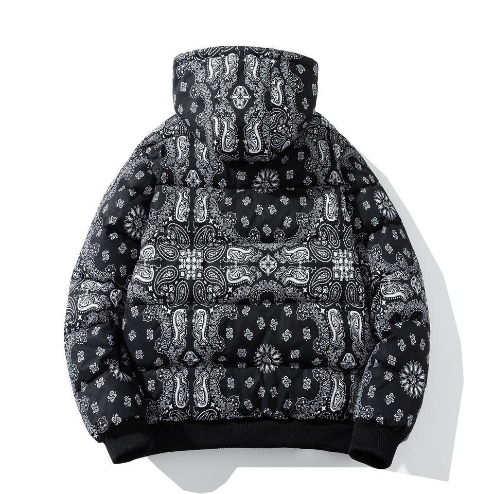 Logotipo personalizado Nuevo diseño de impresión al aire libre acolchado abajo chaqueta capucha de moda de invierno cálido abrigo elegante chaqueta acolchada