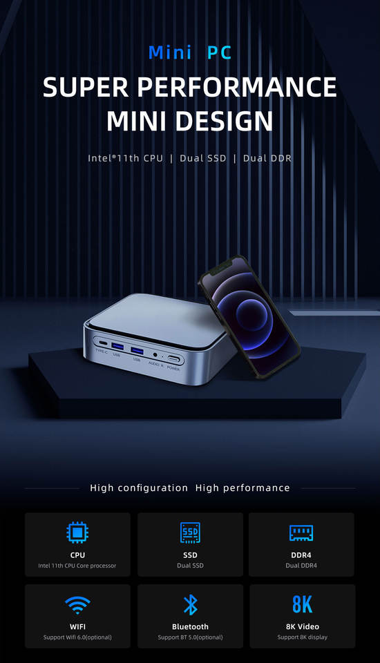 Mini PC de Escritorio Personalizado con Logotipo, Intel Tiger Lake I5 1135G7 NUC, 10 Núcleos, RAM DDR4, Almacenamiento SSD+HDD, Enchufe AU, Yutemini