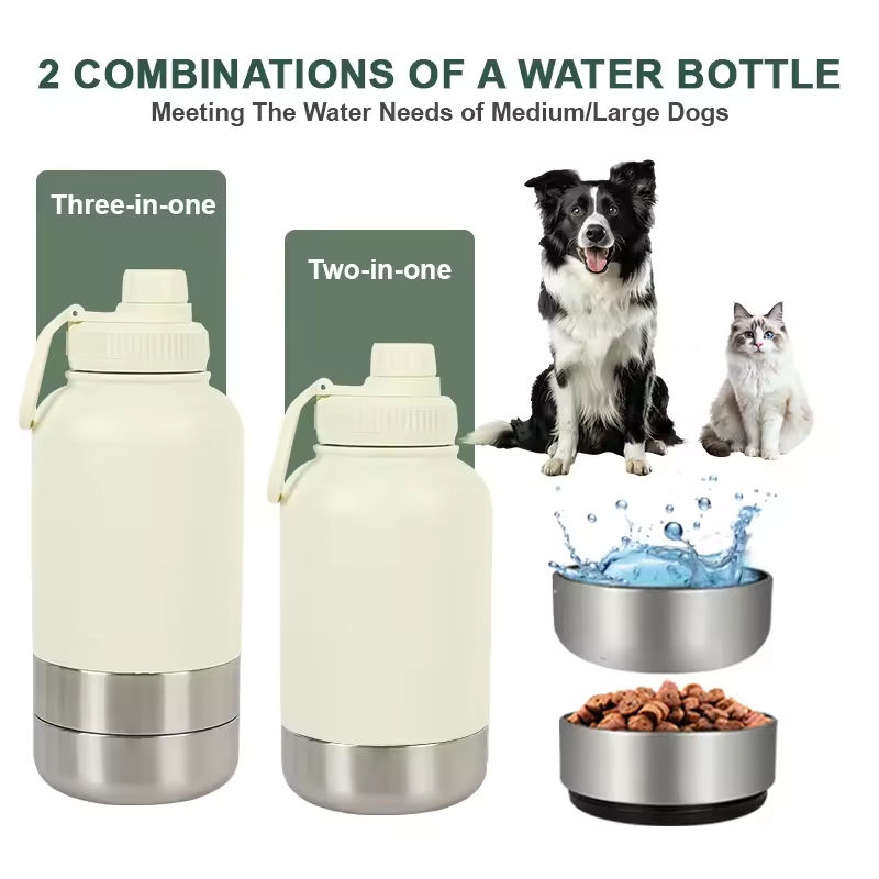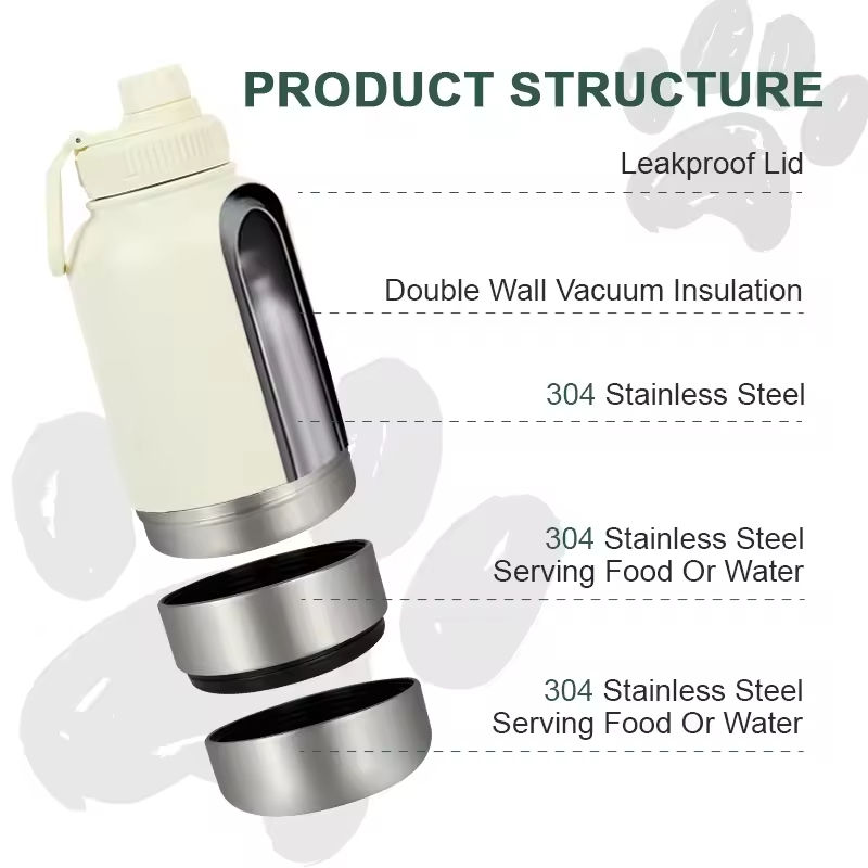 Botella de Agua Portátil para Perro de Acero Inoxidable con Logotipo Personalizado, Nuevo Estilo, Grande, 1000 ml, 32 oz, IPX6, 3 en 1, Termo de Viaje