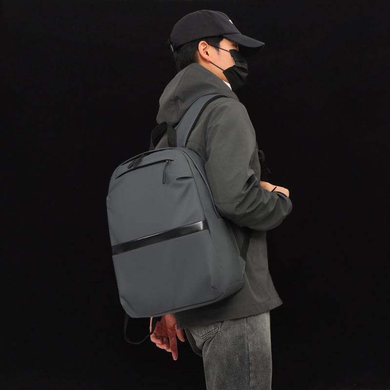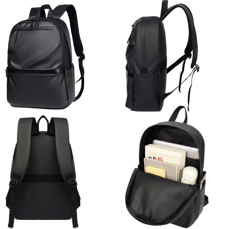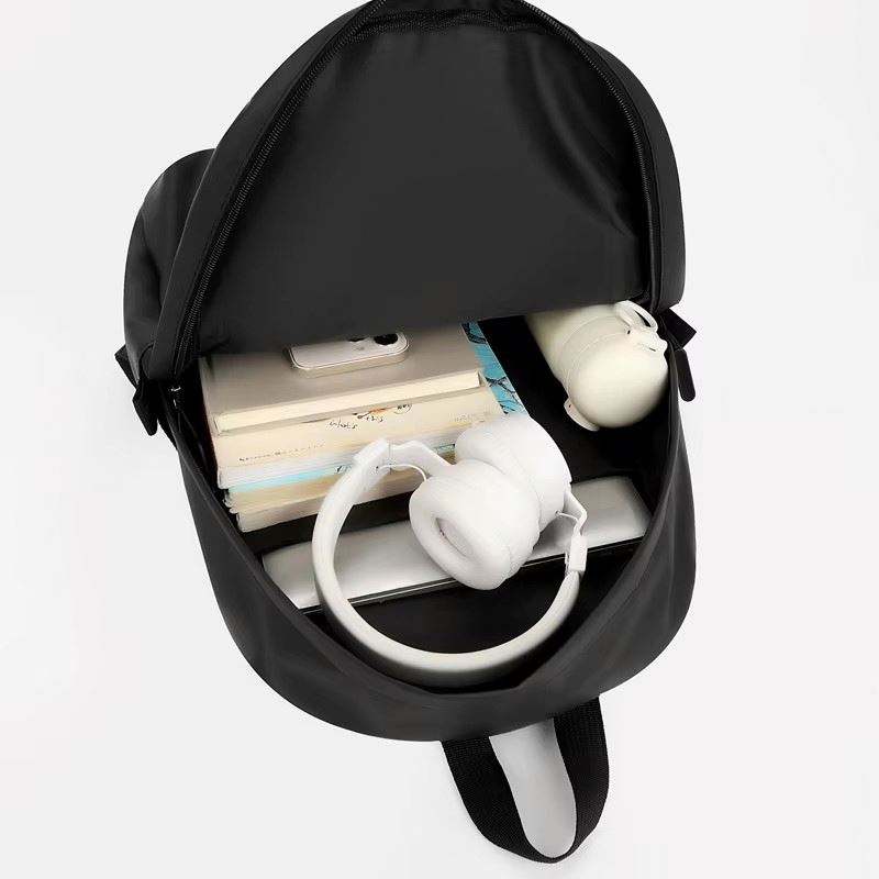 Mochila para Portátil Negra Simple, Deportiva, Casual, Impermeable, de Nailon con Logotipo Personalizado