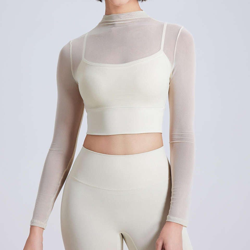 Camiseta Deportiva Ajustada de Nailon y Elastano con Logotipo Personalizado, Camiseta de Yoga de Manga Larga con Tela de Sensación Ligera para Mujer