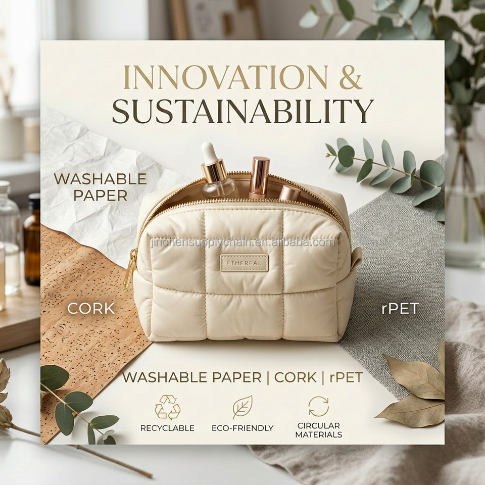 Bolsa de Maquillaje de Viaje Plegable, Ligera y Moderna, con Cierre de Cordón Metálico Acanalado, Personalizable con Logotipo, OEM, ODM, Marca Privada, Regalo para Damas de Honor