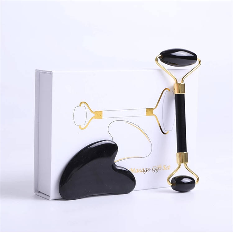 Rodillo Facial de Piedra Natural de Obsidiana y Nefrita con Logotipo Personalizado, Rodillo Facial de Jade Rosa Opal, Set de Gua Sha