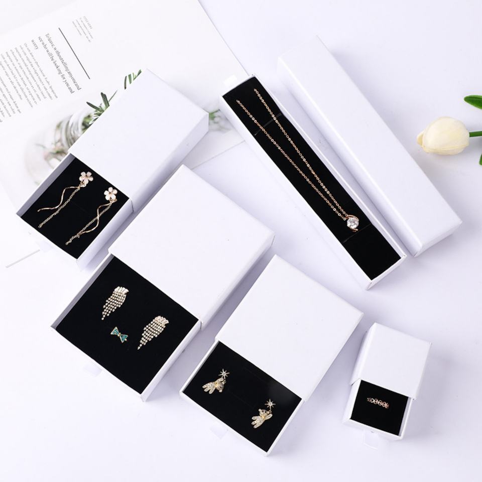 Caja de Almacenamiento de Joyas con Logotipo Personalizado, Caja de Papel Tipo Cajón Personalizable Directo de Fábrica para Collares, Embalaje de Regalo con Esponja