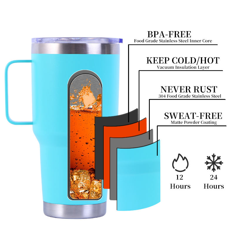 Logotipo personalizado al aire libre 30oz tazas de viaje de doble pared mango de acero inoxidable aislado al vacío vaso de viaje con asa