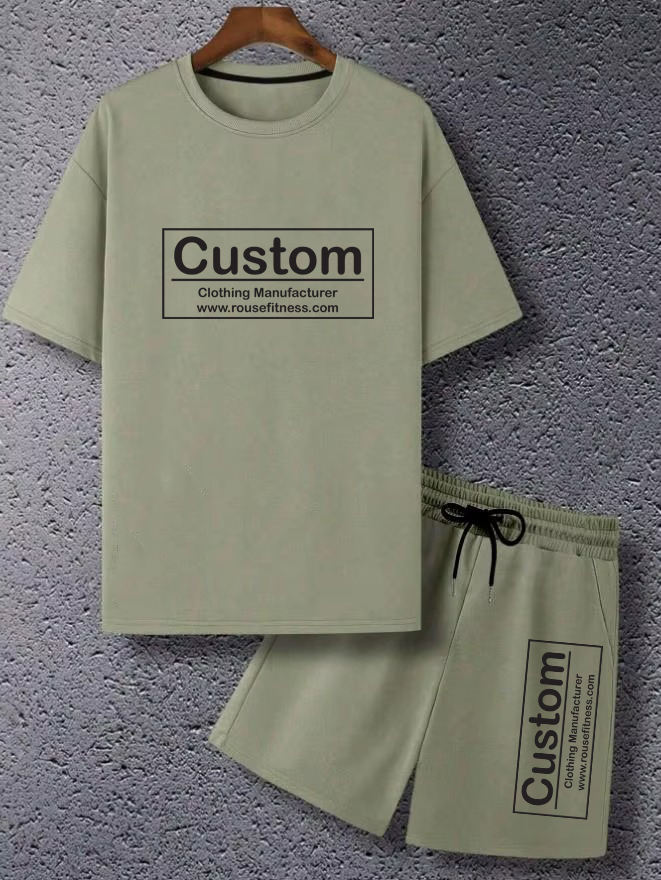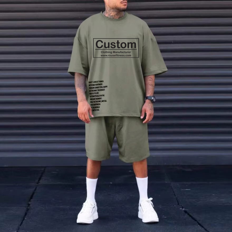 Conjunto de Camiseta y Pantalones Cortos para Hombre con Logotipo Personalizado, Hombros Caídos, Ropa Deportiva, Estilo Casual de Verano, 100% Algodón Transpirable, OEM