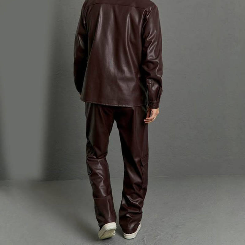 Pantalones de chándal bordados de ajuste relajado apilados gruesos de gran tamaño con logotipo personalizado, pantalones de cuero rectos con bolsillos grandes para hombre
