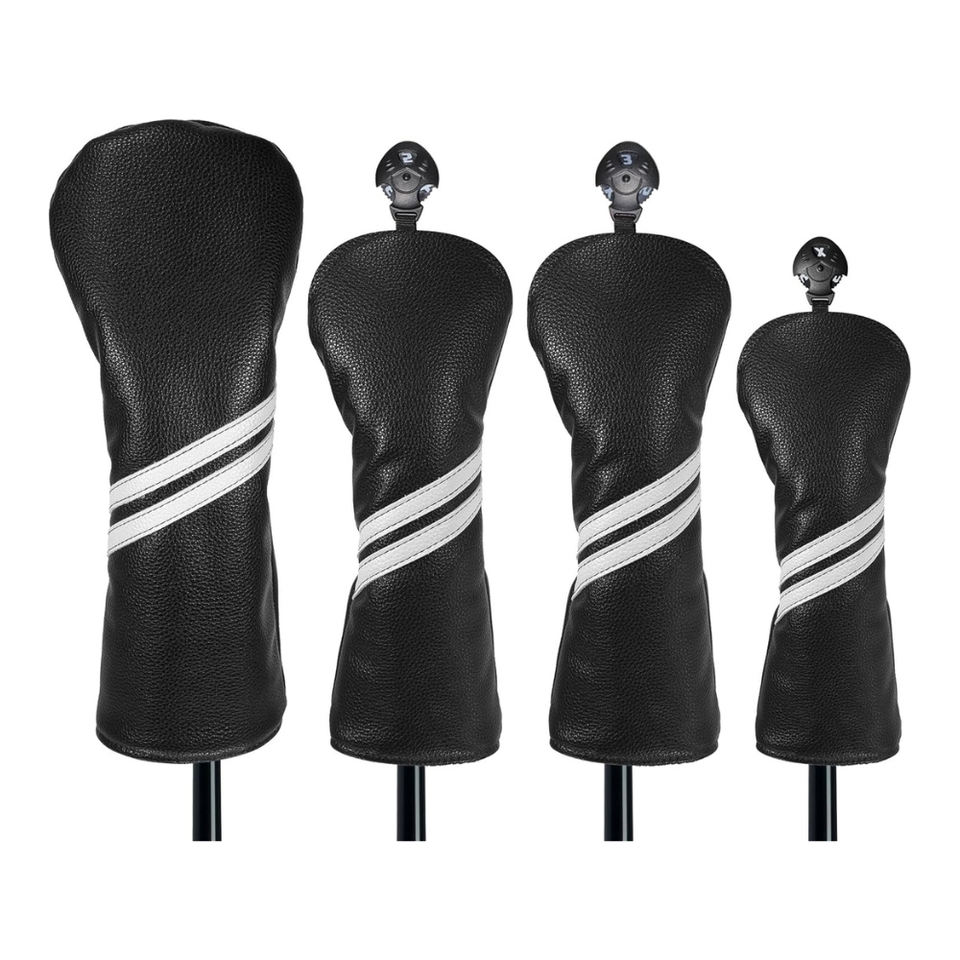 Logotipo personalizado de cuero PU Durable 4PCS Golf Wood Headcovers Black Covers con líneas blancas para hombres