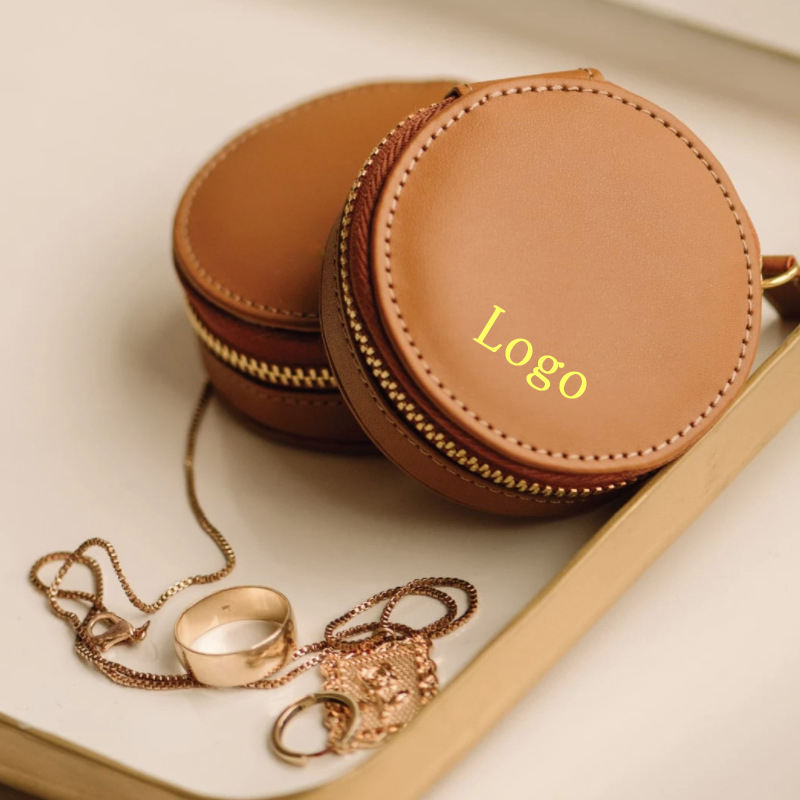 Estuche de Joyería de Viaje Moderno y Elegante de Cuero PU con Logotipo Personalizado, Mini Organizador de Joyas con Cierre para Collares, Aretes y Anillos