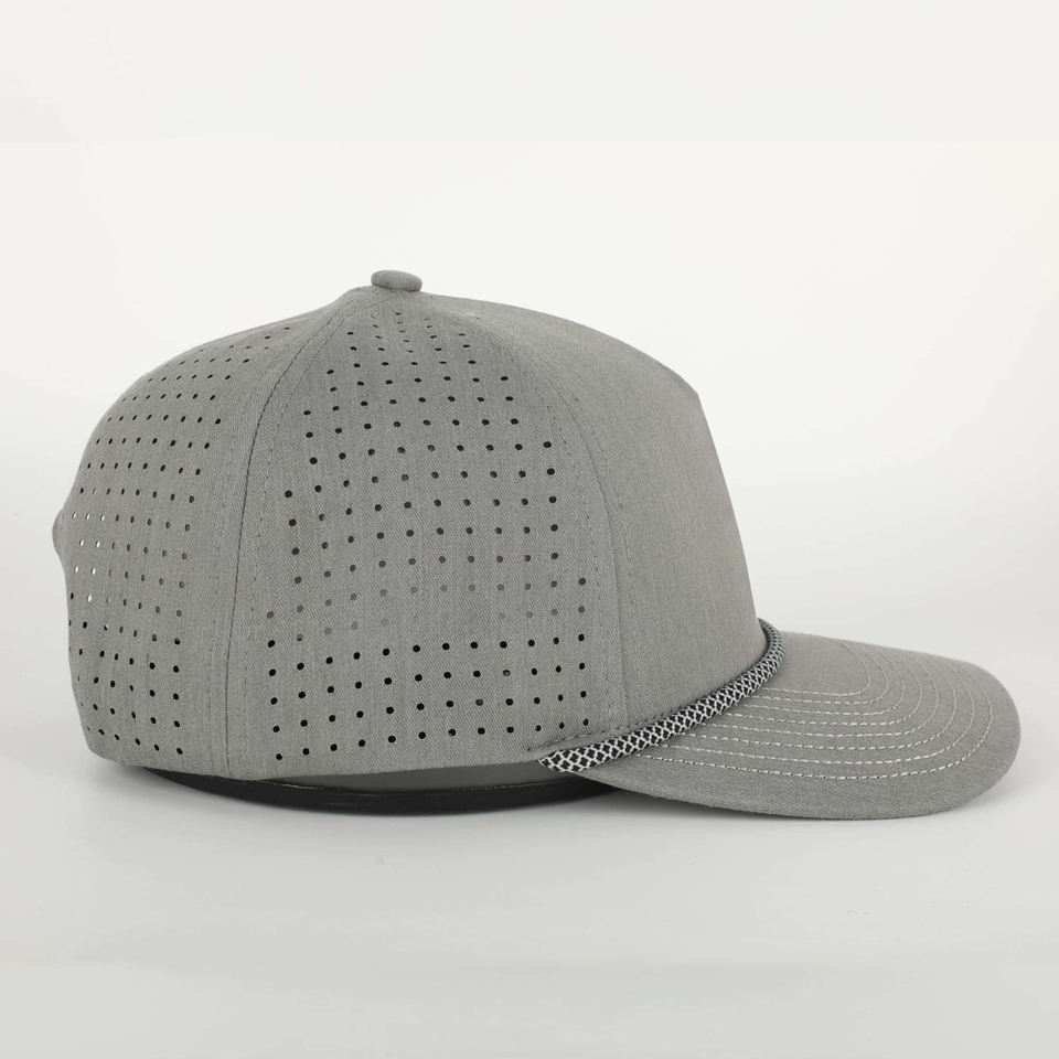 Gorra de béisbol estructurada de 5 paneles con parche de PVC con logotipo personalizado, gorra de camionero impermeable, gorras de rendimiento, gorras de cuerda de Golf para hombre