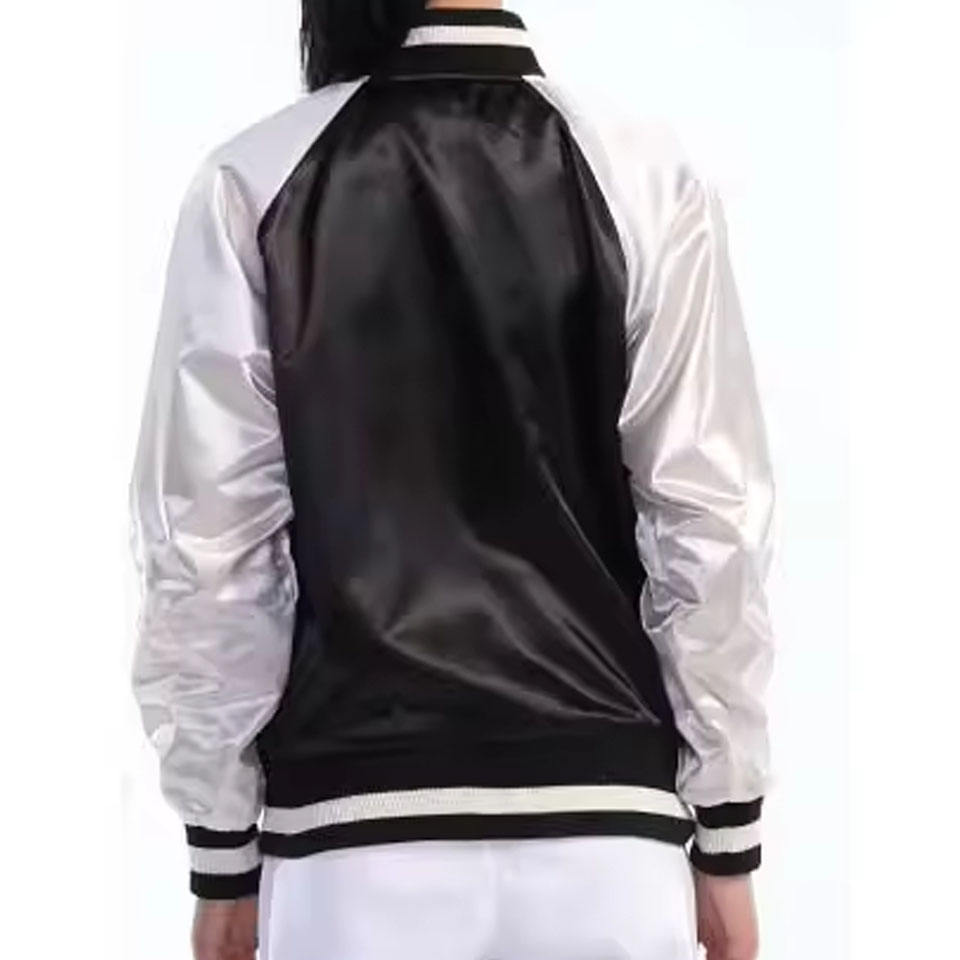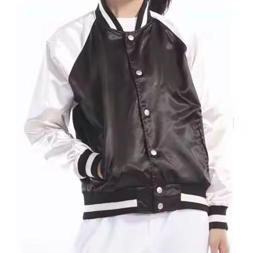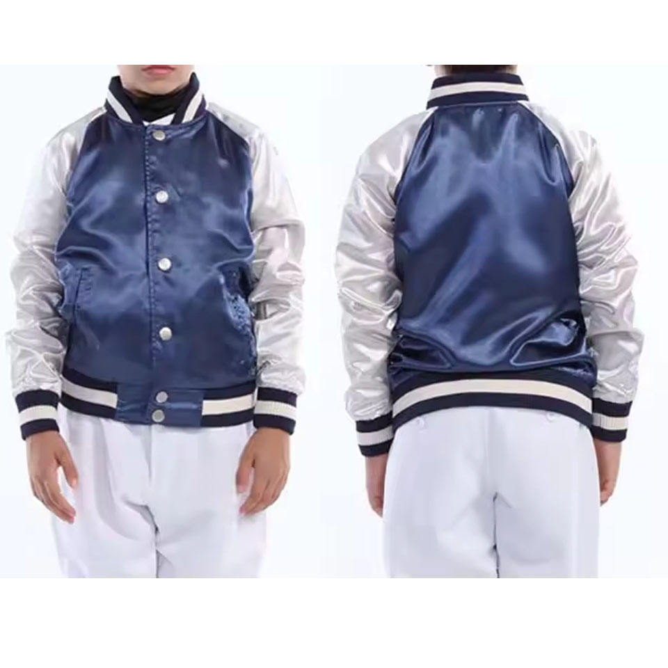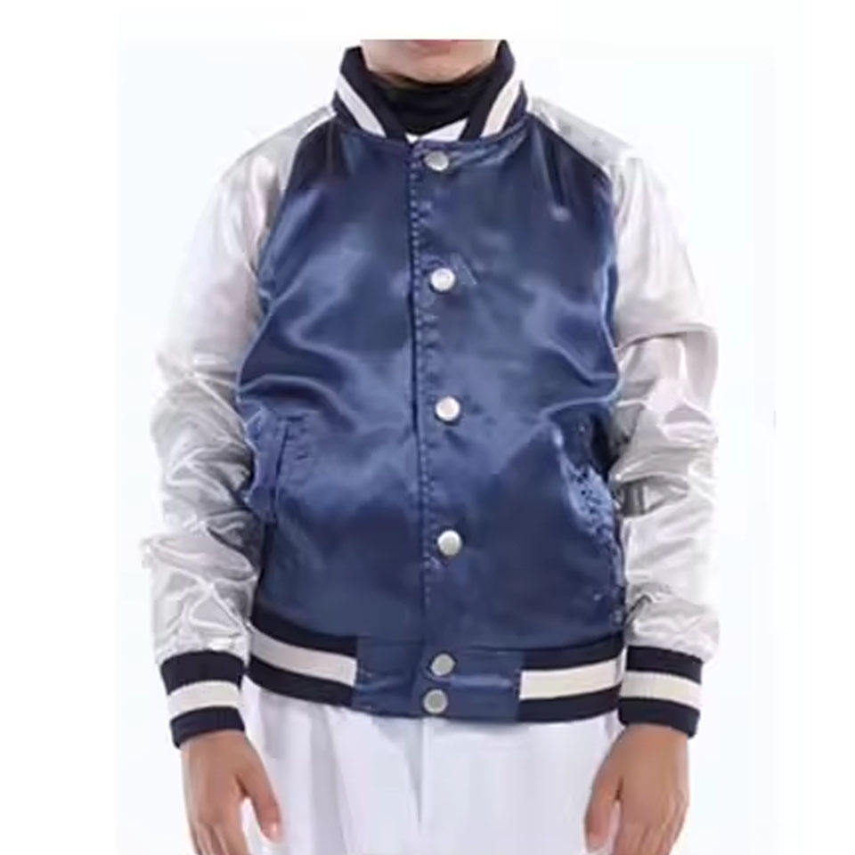 Chaqueta universitaria de satén con parche de logotipo personalizado, chaqueta de béisbol Bomber OEM Unisex Reversible College Winter Street Fashion Wear