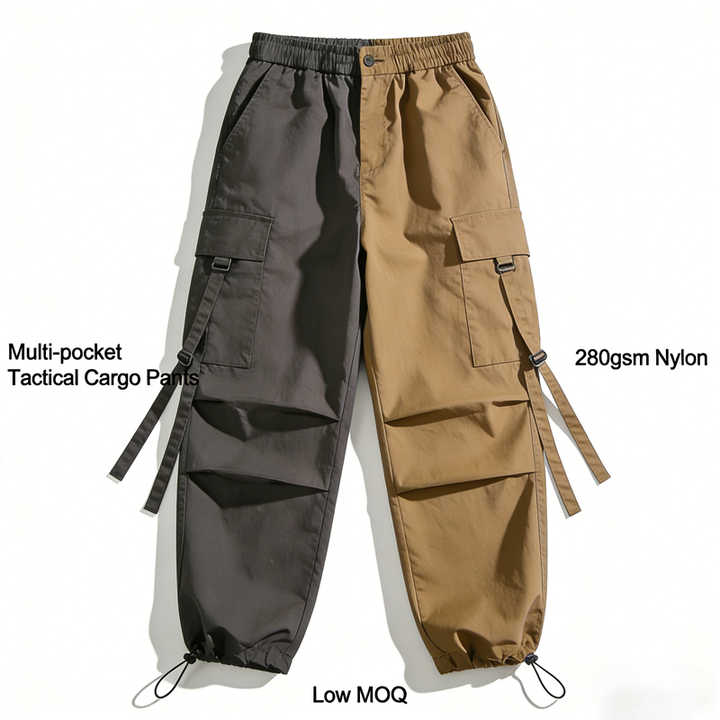 Pantalones Cargo de Dos Tonos con Parches y Logotipo Personalizado, Pantalones Deportivos Tácticos con Múltiples Bolsillos y Correas, Pantalones Anchos de Estilo Hip Hop para Hombre