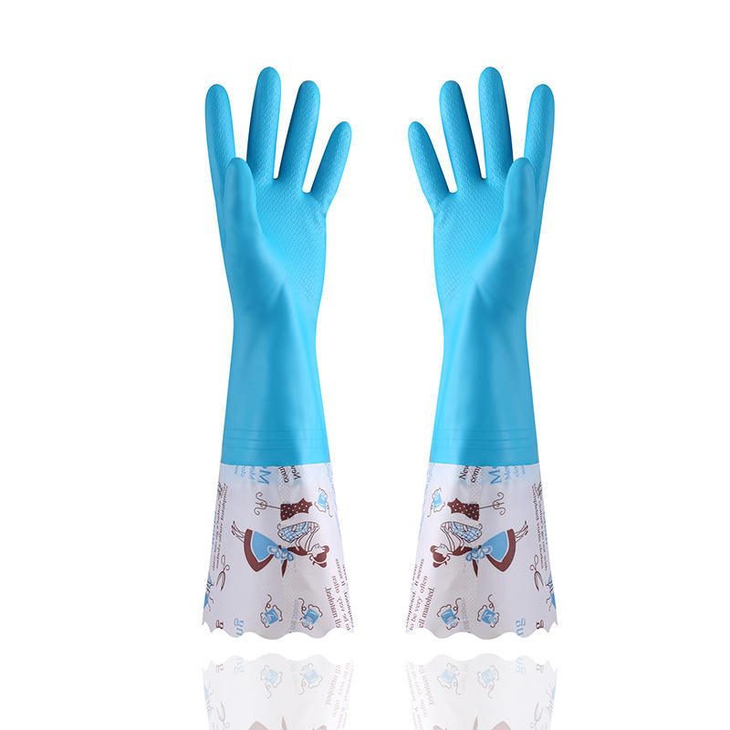Guantes de Látex Gruesos con Logotipo Personalizado, 42 cm, Impermeables, Forrados de Felpa, para Lavar Platos y Ropa, Venta al Por Mayor