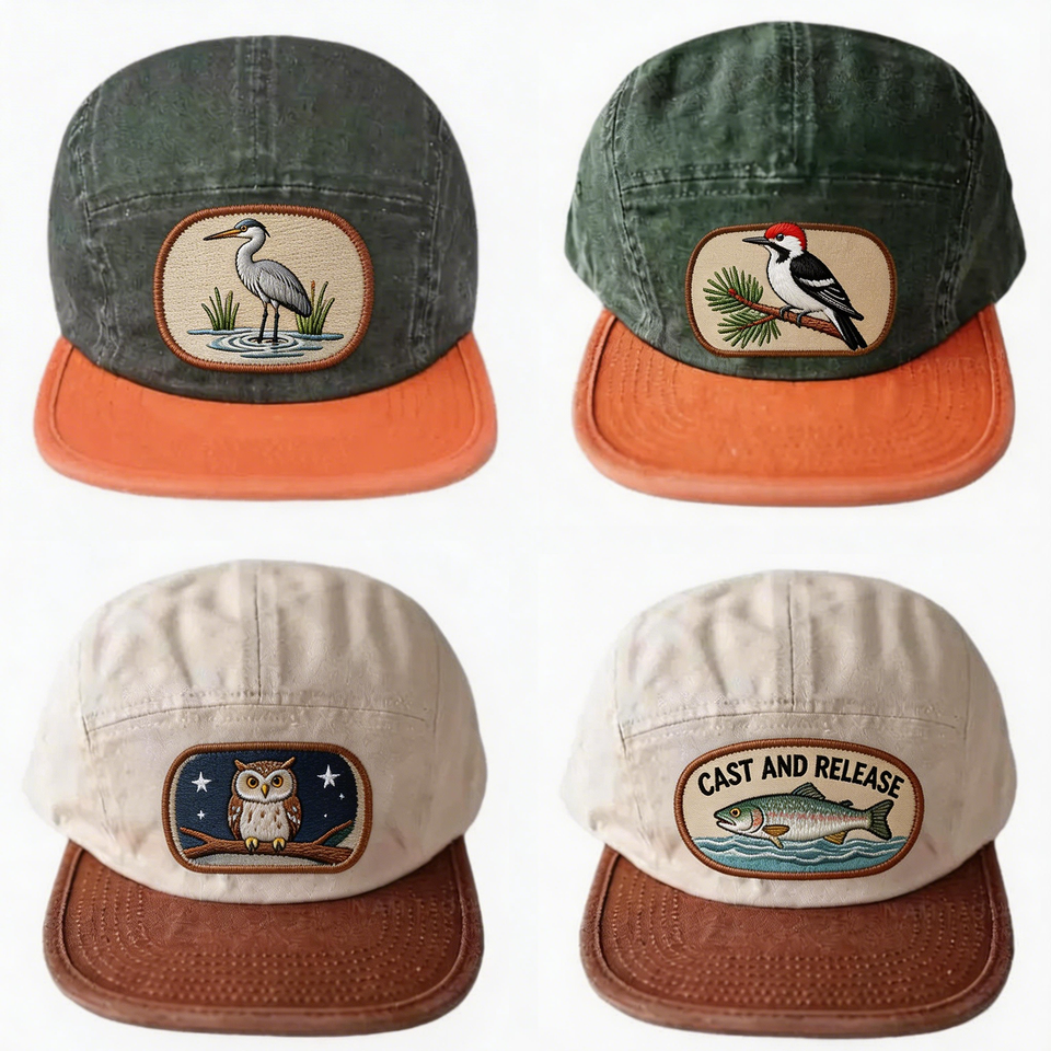 Gorra de Pesca y Caza de 5 Paneles con Logotipo Personalizado, Transpirable, de Lona Encerada, con Cierre Ajustable