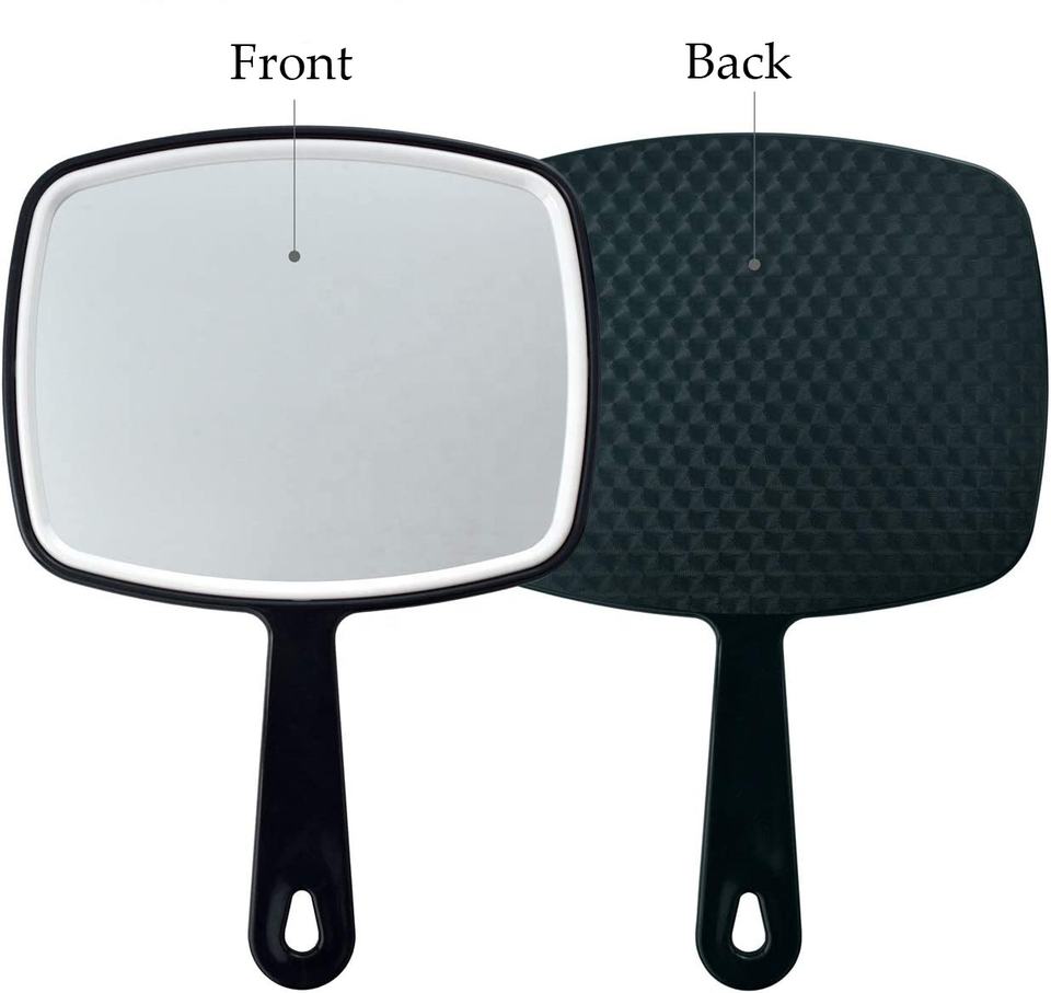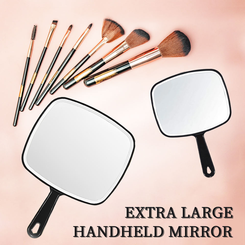 Espejo de Maquillaje Cuadrado Personalizado con Logotipo, Espejo de Mano con Orificio, Mango de Plástico Negro, Vidrio Extra Grande, Venta al por Mayor para Salones de Belleza