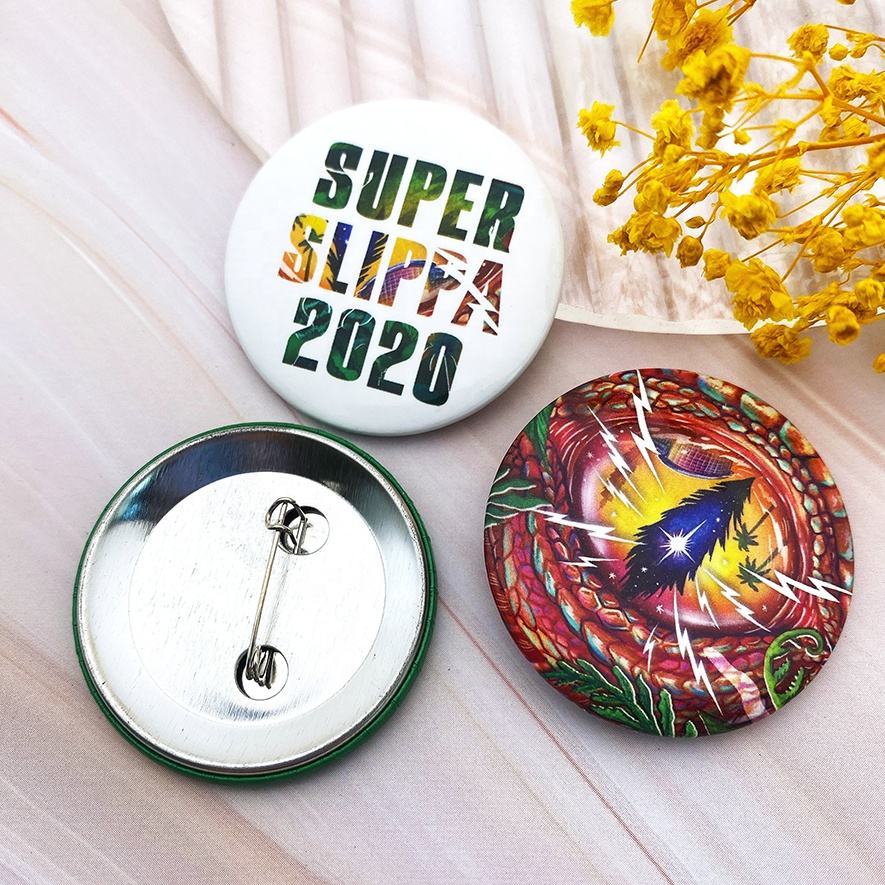 Insignia de botón de estaño de forma redonda con Pin de logotipo personalizado