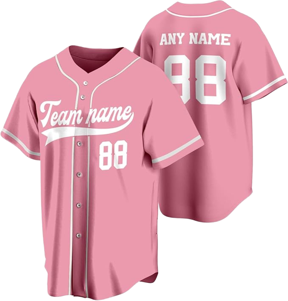 Camiseta de Béisbol Rosa con Logotipo Personalizado, Cierre de Botones, Manga Corta, Transpirable, 100% Poliéster, Impresión de Nombre y Número para Softbol
