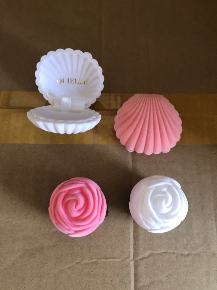 Caja de joyería con Logo personalizado para niños, caja de regalo de joyería con forma de concha de mar, color rosa