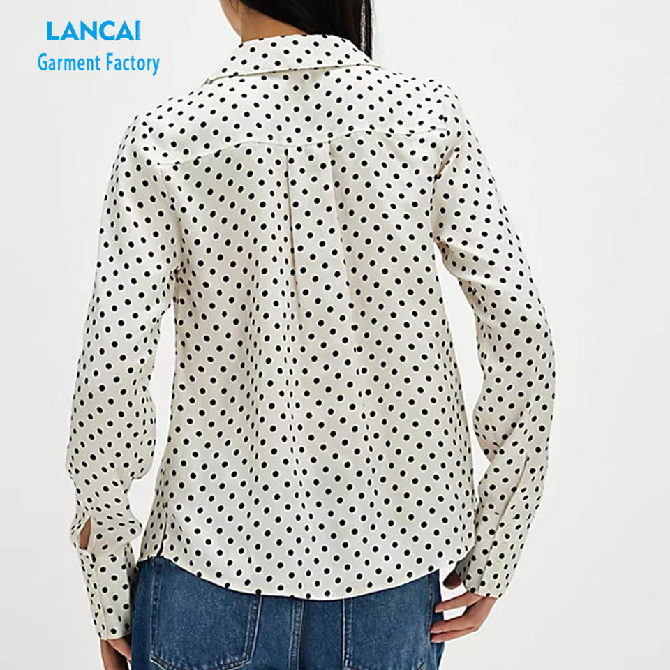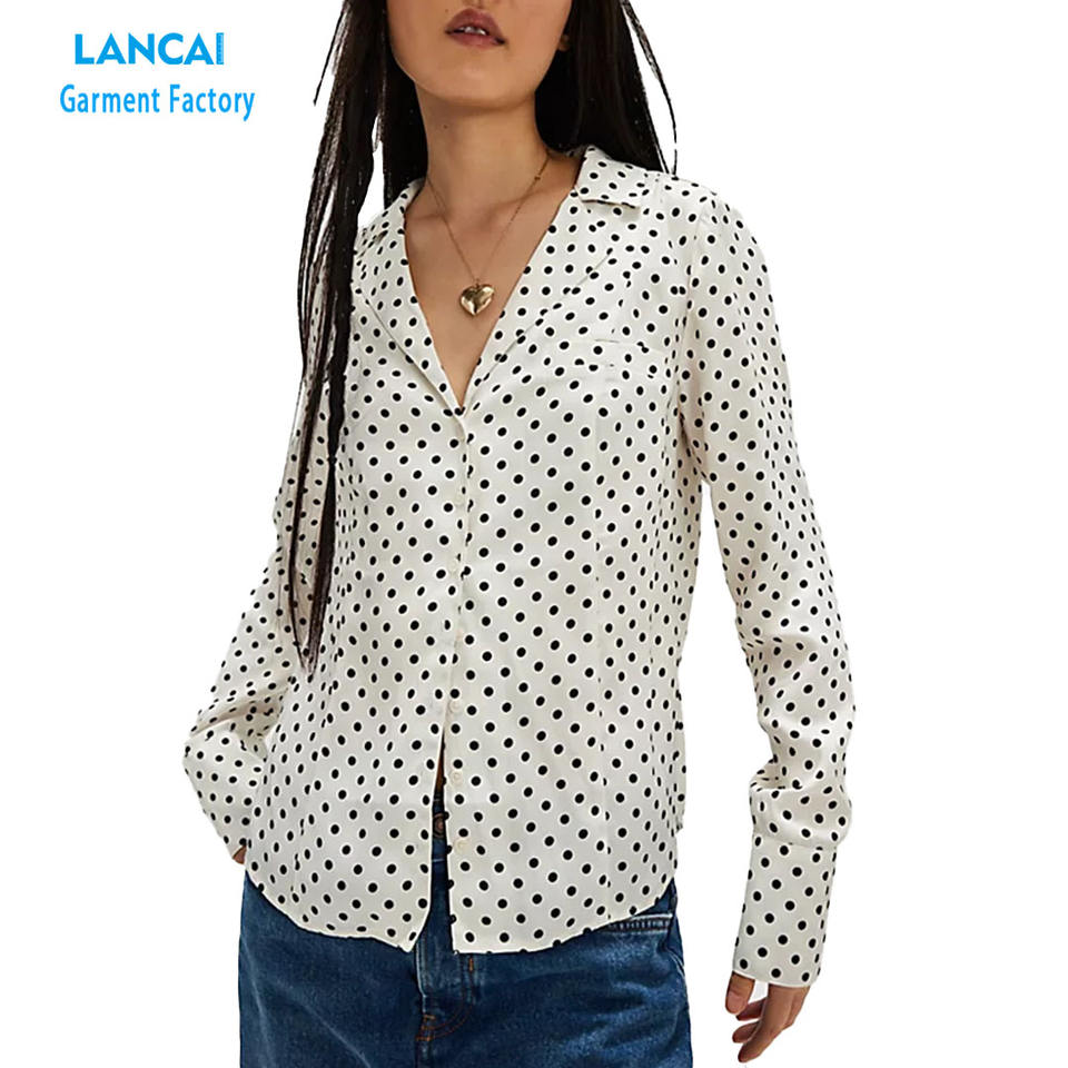 Camisa de gran tamaño para mujer con botones lisos y logotipo personalizado, camisas de manga larga informales de tela de algodón