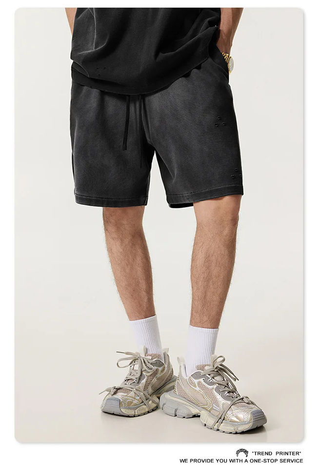Pantalones cortos de hombre holgados de playa informales de secado rápido lisos teñidos lisos con logotipo personalizado