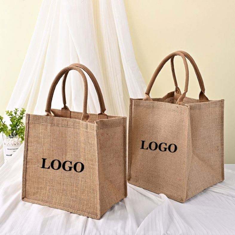 Bolsa de Compras Personalizada con Logotipo, Bolsa de Lona de Color Kraft, Bolsa de Yute Reciclado con Asas de Lino, Bolsa de Regalo Promocional con Logotipo