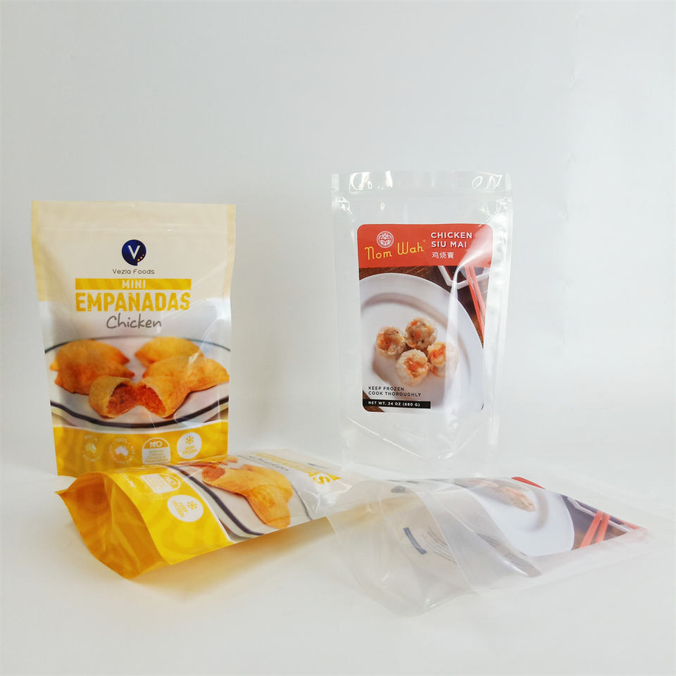 Bolsa de plástico con logotipo personalizado para almacenamiento de alimentos, embalaje de pie para pollo, congelador, cierre con cremallera