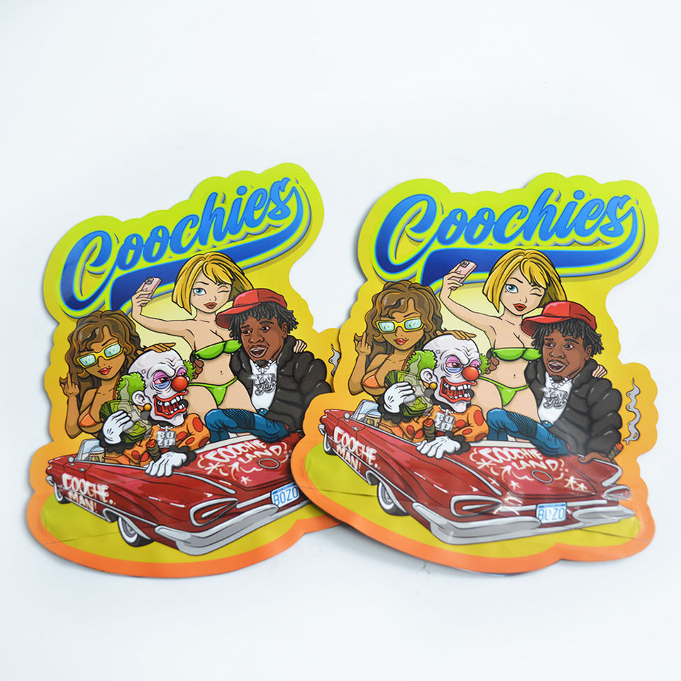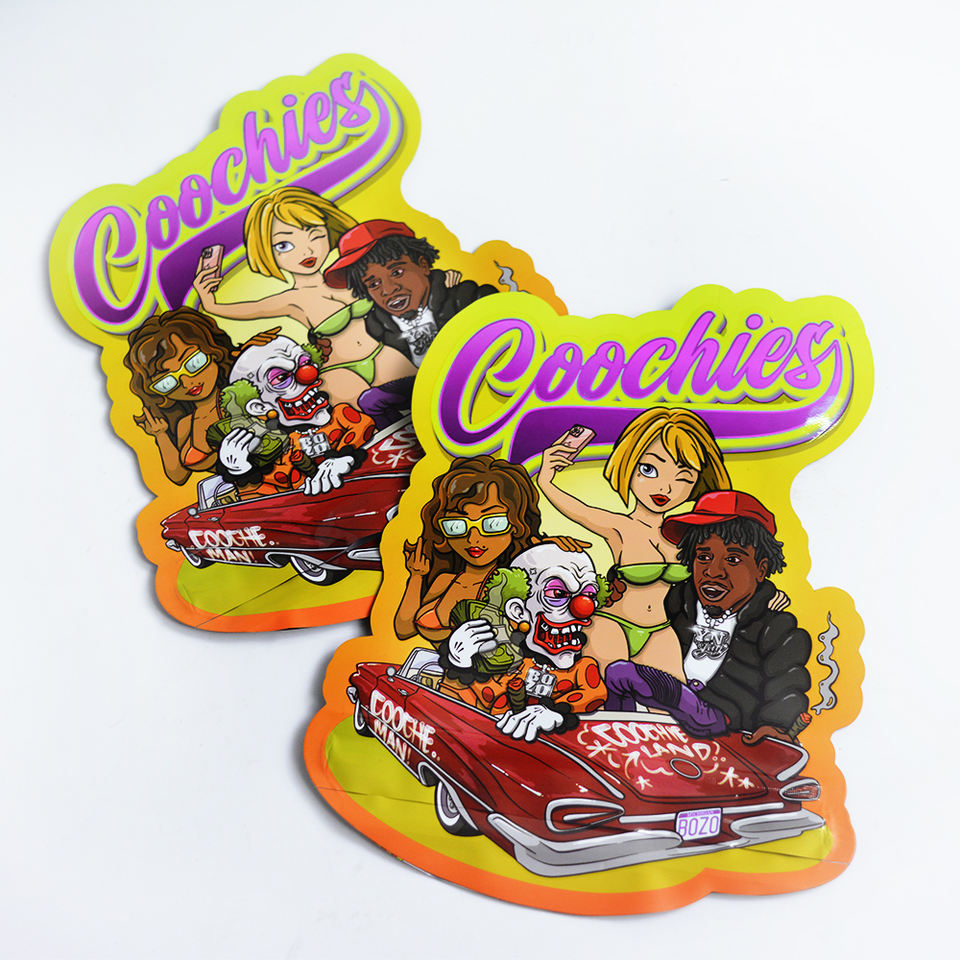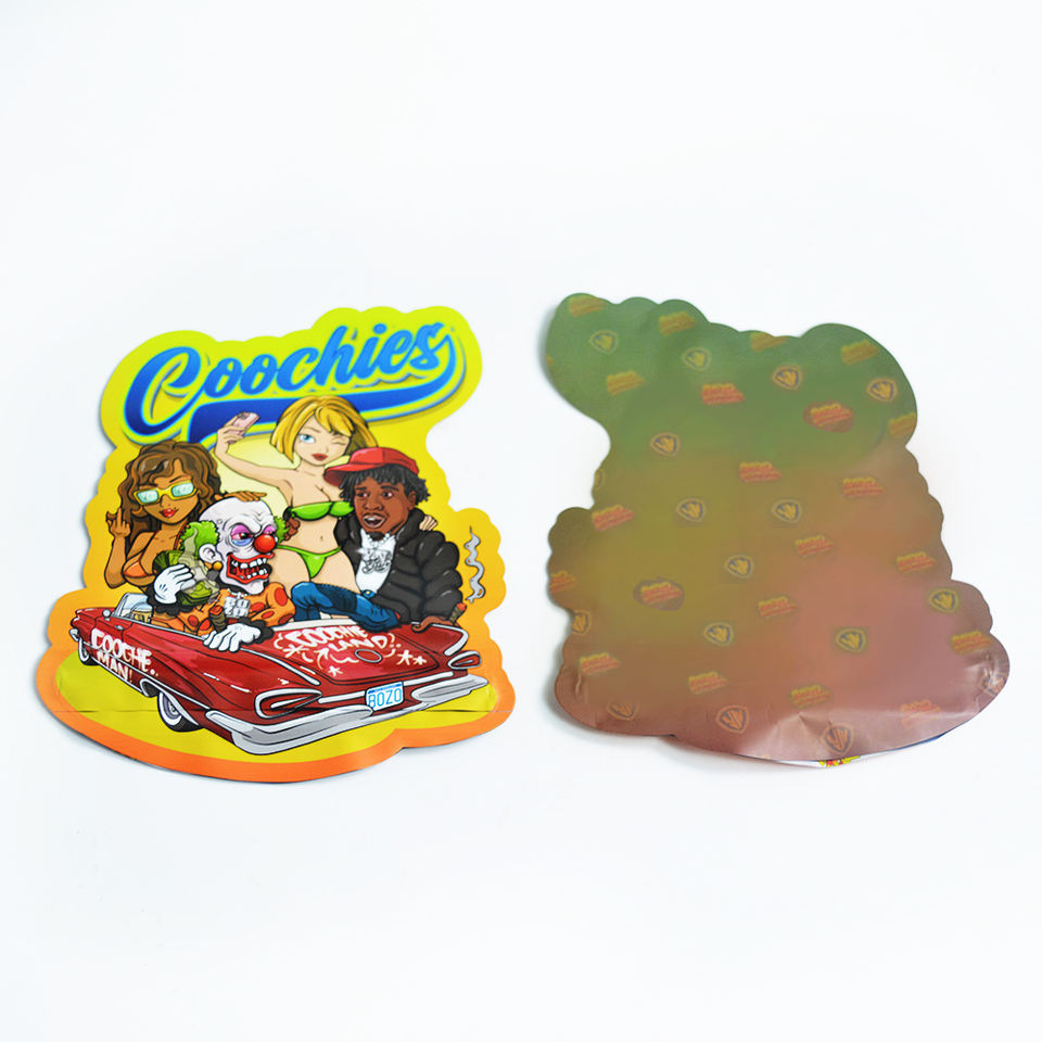 Bolsas de Mylar con Logotipo Personalizado, Embalaje de Plástico, Bolsa de Forma Especial Única, 3.5g 14g 28g 1lb, Bolsas Planas de Tacto Suave con Corte Troquelado