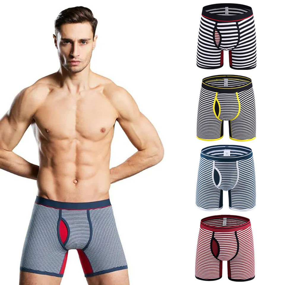 Calzoncillos bóxer transpirables a rayas para hombre de longitud grande con logotipo personalizado, ropa interior sin costuras para hombre, Calzoncillos Bóxer