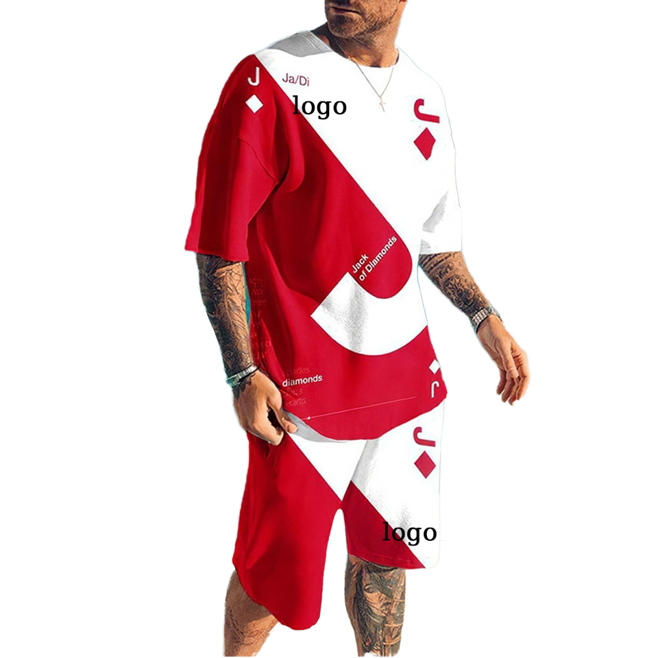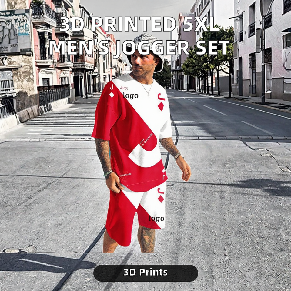 Chándal de punto deportivo de LICRA y algodón con logotipo personalizado de talla grande 5XL, conjuntos cortos elásticos de 2 piezas para hombre al por mayor