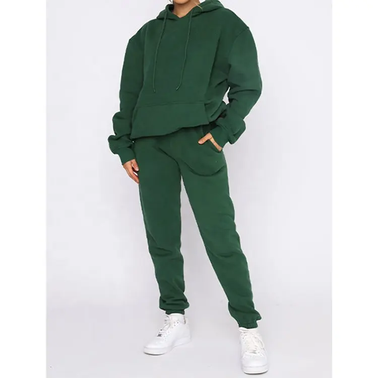 Conjunto de Sudadera con Capucha y Pantalones de Chándal de Dos Piezas de Color Sólido con Logotipo Personalizado, Tallas Grandes, para Otoño e Invierno, para Mujer