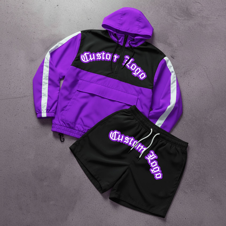 Conjuntos Deportivos de Talla Grande con Logotipo Personalizado, Chaqueta y Pantalones Cortos de Dos Piezas, Traje Deportivo de Verano Ligero de Nailon para Hombre