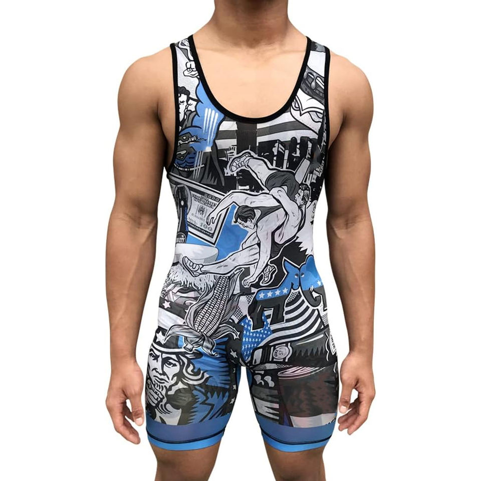 Camiseta de lucha libre de equipo digital sublimación talla grande logotipo personalizado traje de levantamiento de pesas