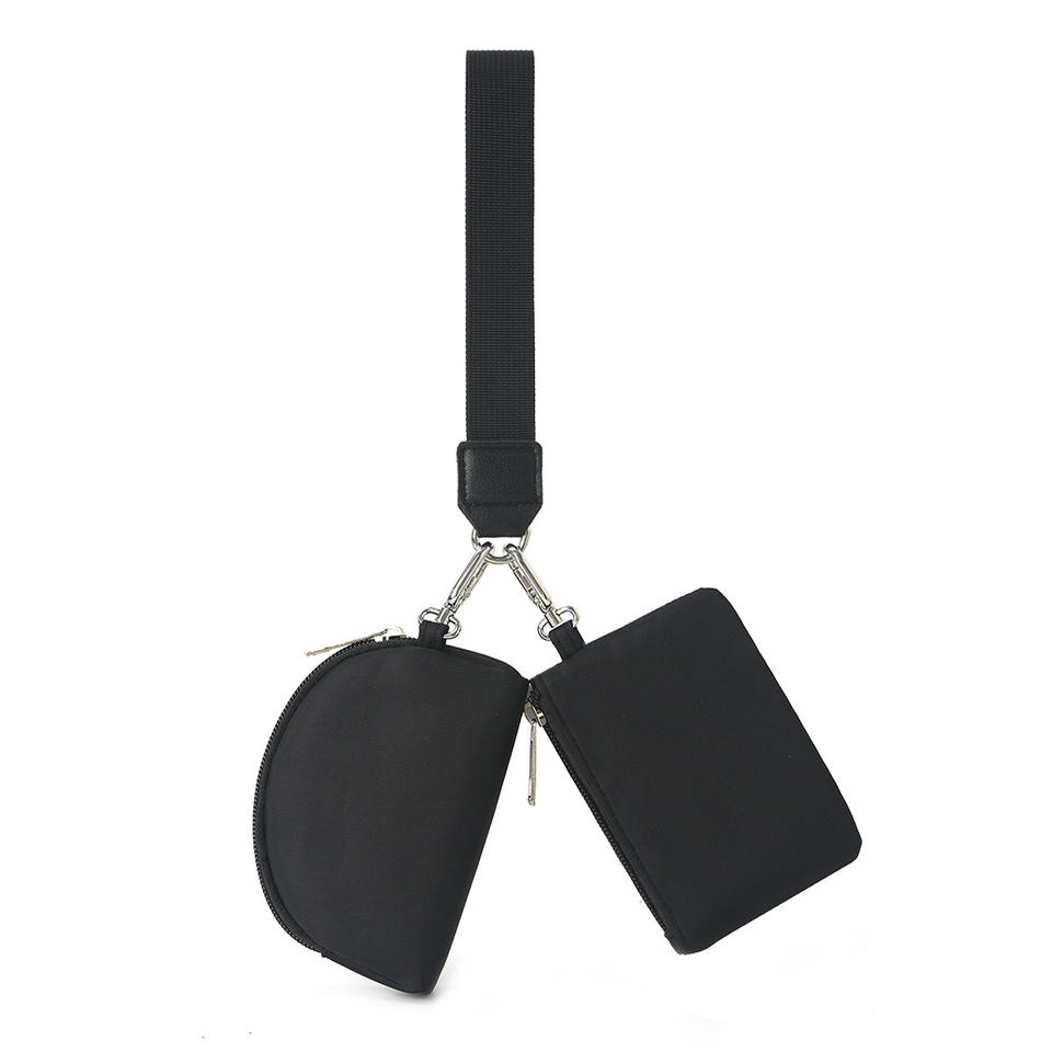 Monedero con cremallera y patrón geométrico de poliéster con logotipo personalizado, 2 en 1, mini tarjetero impermeable, unisex, deportivo, de viaje