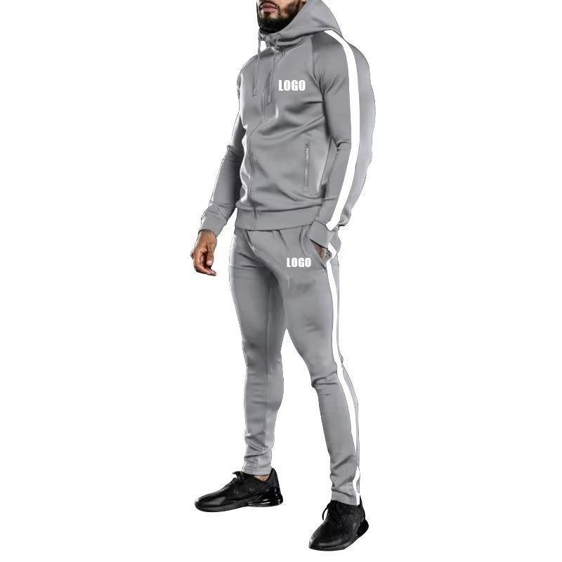 Logotipo personalizado poliéster hombres Jogger pantalones Bottoms cremallera sudaderas con capucha tamaños personalizados ropa deportiva 2025 hombres deporte Slim Fit chándales personalizados