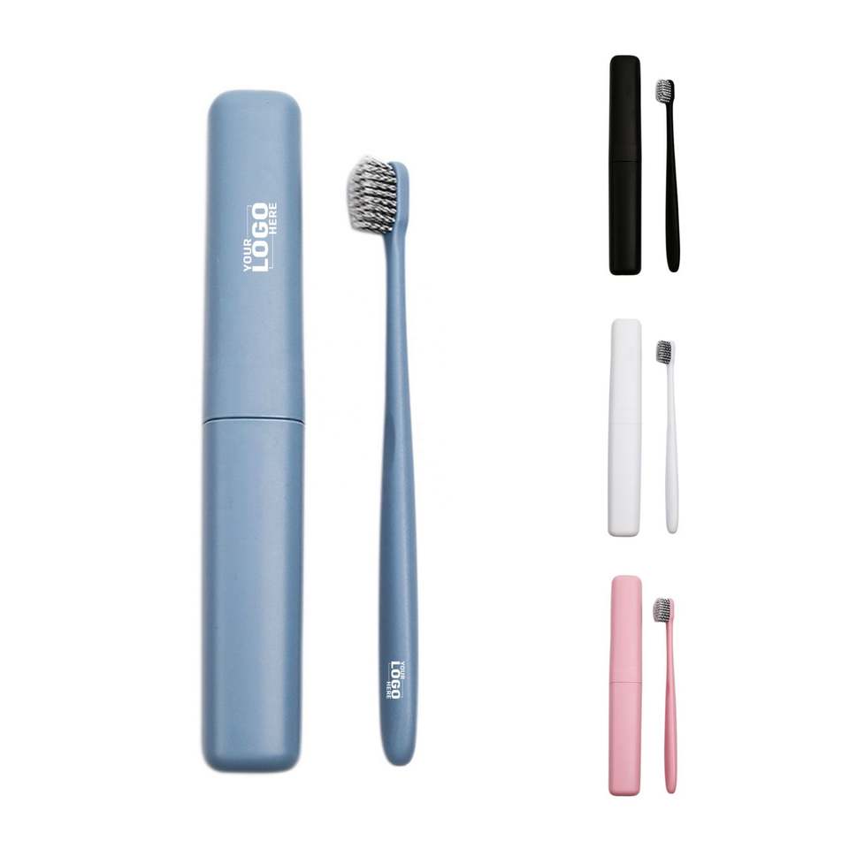 Cepillo de Dientes Ecológico Popular con Logotipo Personalizado, Cepillo de Dientes Portátil con Cerdas de Carbón Vegetal, Estuche para Cepillo de Dientes, Contenedor de Viaje para Cepillo de Dientes