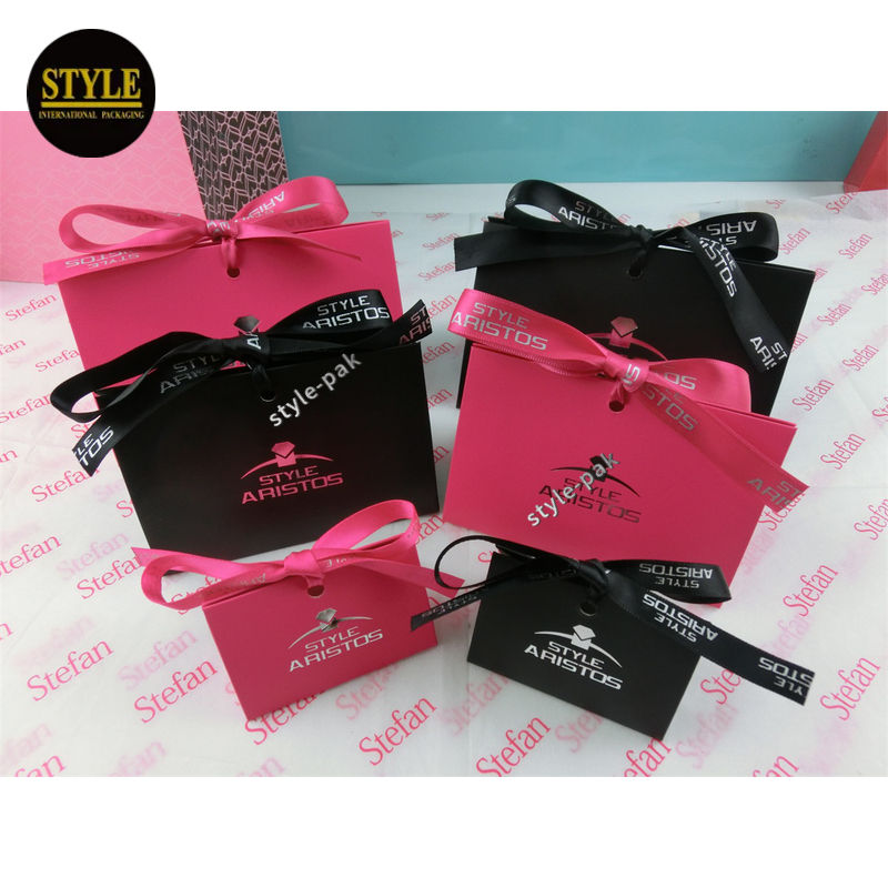Sobre de regalo de joyería de papel de arte rojo portátil con logotipo personalizado bolsa con forma de mini monedero con Lazo de cinta para cosméticos