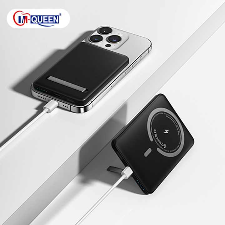 Banco de Energía Magnético Portátil con Carga Rápida Inalámbrica y Logotipo Personalizado, 5000mAh/10000mAh, con Soporte y Base