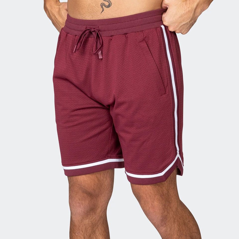 Pantalones cortos de baloncesto transpirables con logotipo personalizado para hombre, pantalones cortos de baloncesto de malla de poliéster de alta calidad al por mayor para hombre