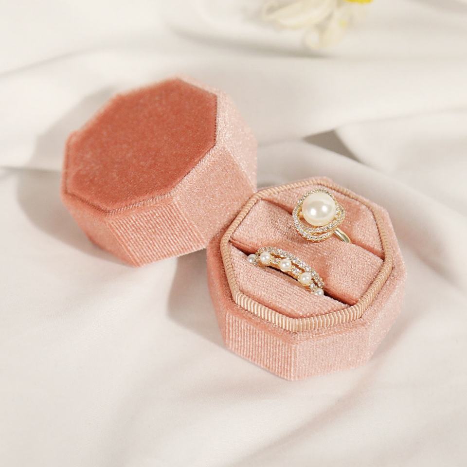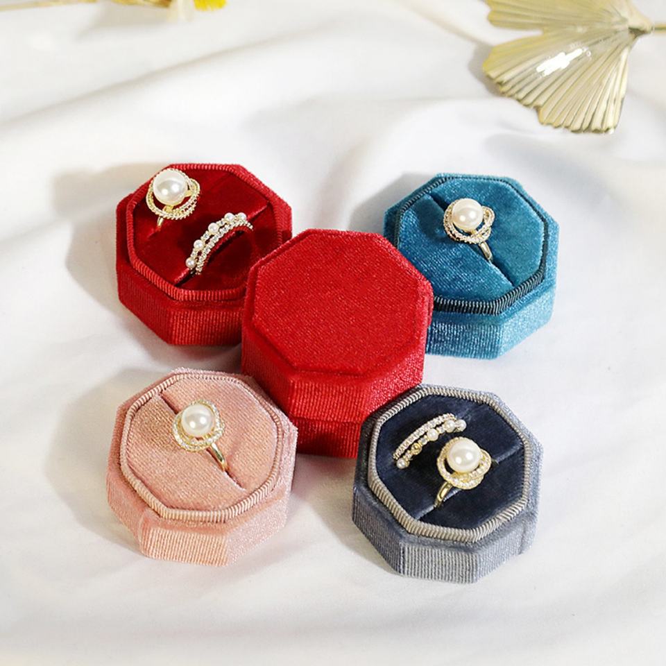 Caja de Joyería con Logotipo Personalizado, Estuche de Joyería de Terciopelo Coreano, Caja Octogonal Doble para Anillos en Gris, Verde y Azul