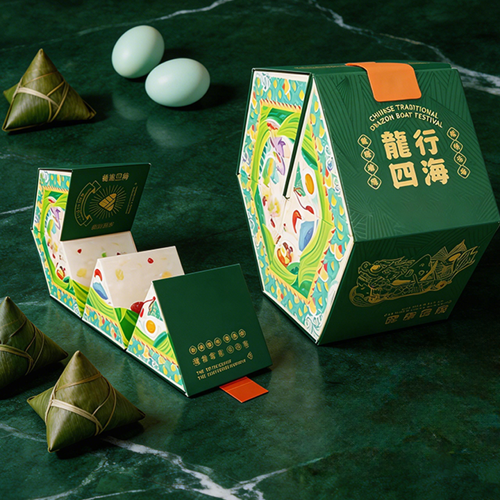 Caja de Regalo de Papel para Empacar Pasteles Zongzi y Moon Cake con Diseño Creativo de Forma Poligonal y Logotipo Personalizado para el Festival del Bote del Dragón