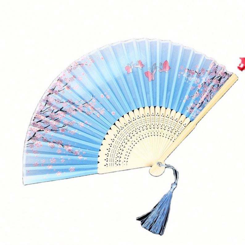 Abanico de Mano de Bambú Ecológico Portátil con Logotipo Personalizado, Arte Folclórico Clásico Tradicional, Regalo Promocional Publicitario DIY con Diseño de Ángel