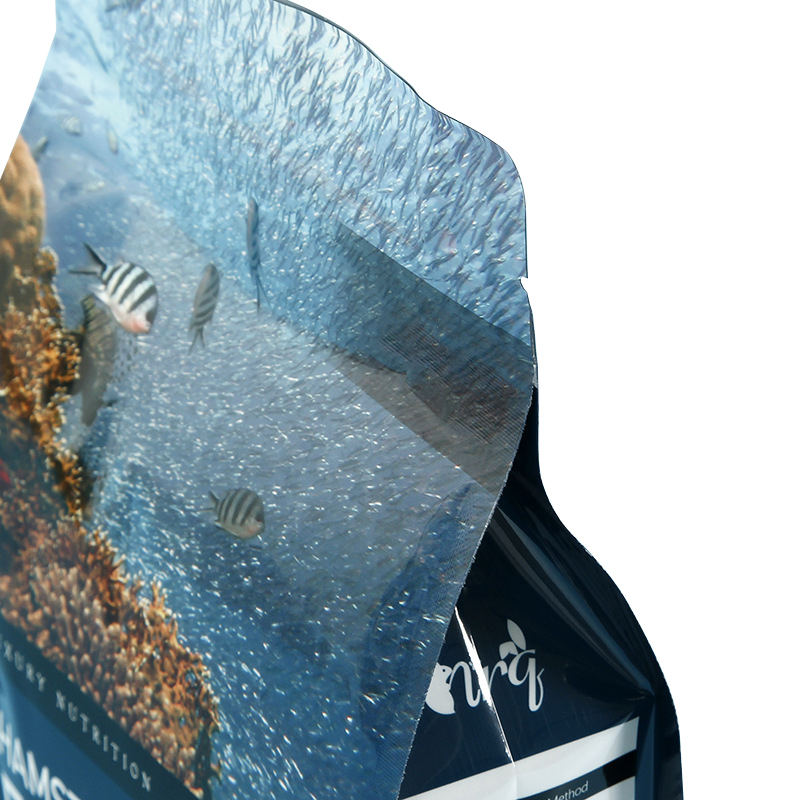 Bolsa de plástico con cierre hermético de pie con fondo plano impreso con logotipo personalizado para envasado de alimentos, gelatina para comida de mascotas, arroz, tapioca, goma de mascar