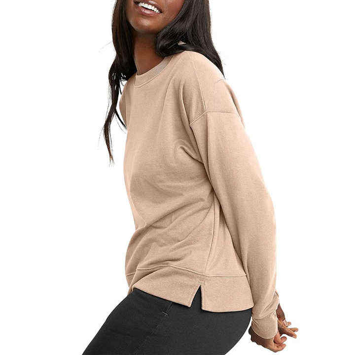 Sudaderas de mujer con diseño de manga larga y logotipo personalizado estampado, Top de corte regular con cuello redondo, traje de moda, sudadera con hombros caídos para mujer