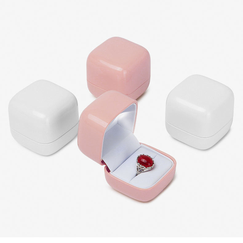 Caja de Joyería Cuadrada Moderna de Lujo con Logotipo Personalizado, Cierre de Hebilla, Luz LED, Diseño Pequeño de PVC con Patrón Liso y Bonito