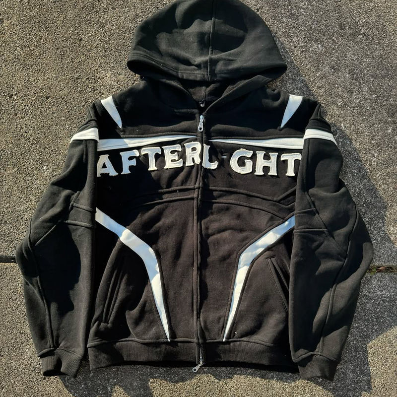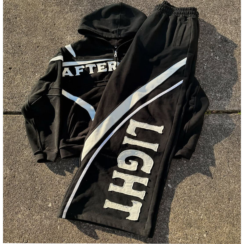 Conjunto de chándal con capucha y pantalones de chándal para hombre, ropa de calle de invierno con cremallera completa y parche impreso con logotipo personalizado, 100% algodón