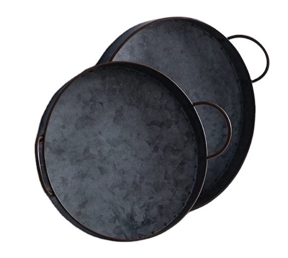 Bandejas de café negras redondas impresas con logotipo personalizado para servir en hoteles y oficinas Juego de metal de dos bandejas de metal personalizadas de calidad para servir