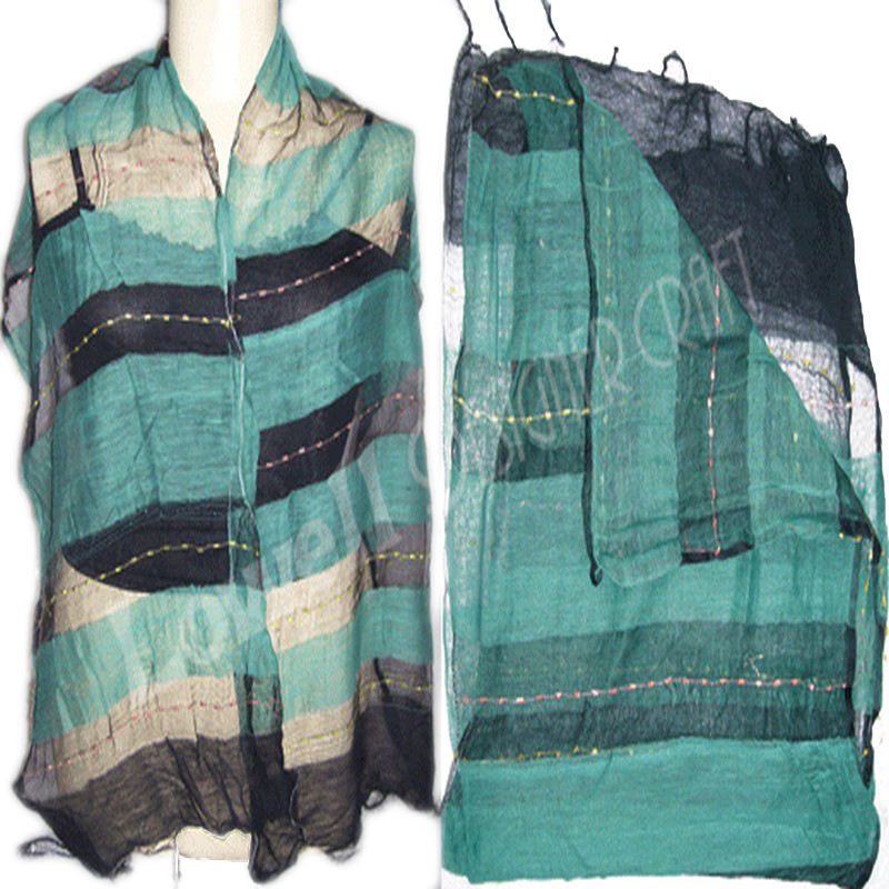 Logotipo personalizado Impreso Patrón de rayas Handloom Bufanda Longitud larga Estilo de verano