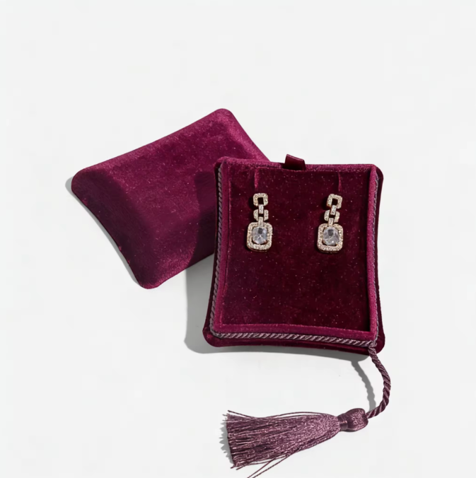 Nombre del producto:Caja de joyería de terciopelo con borla