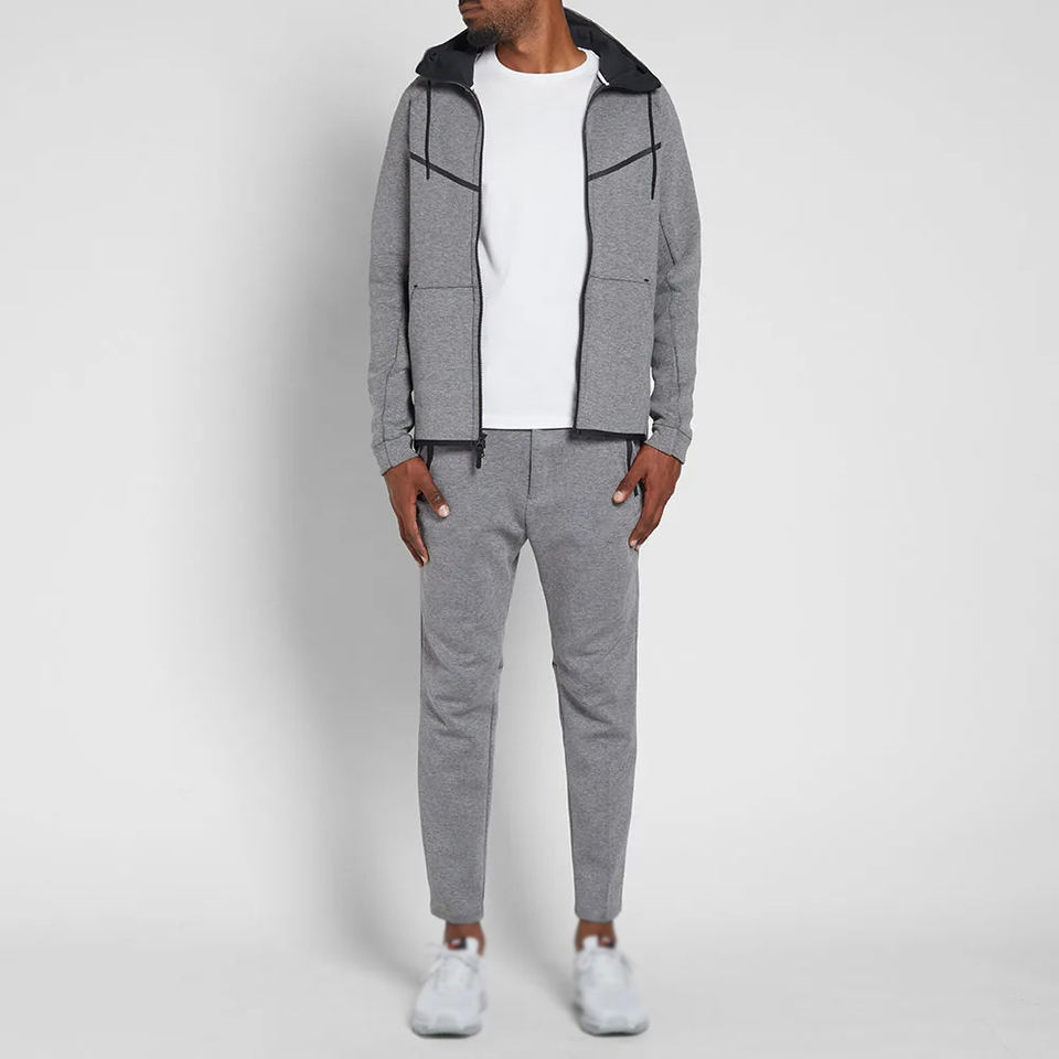 Sudaderas con capucha con cremallera completa de invierno con logotipo personalizado impreso, chándal para correr, chándal para hombre, ropa deportiva de dos piezas de poliéster Tech Fleece