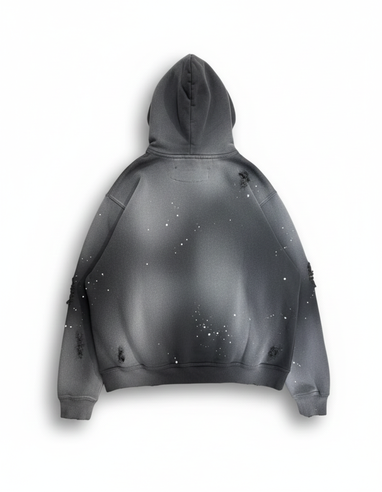 Sudadera con Capucha Extra Grande con Estampado de Logotipo Personalizado, Lavado Ácido, Estilo Urbano Desgastado, con Bolsillo Tipo Canguro
